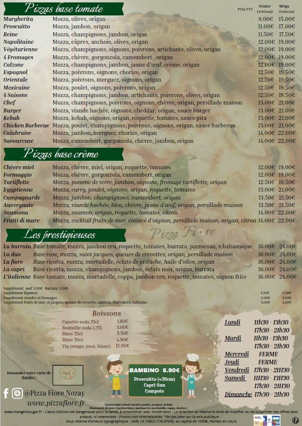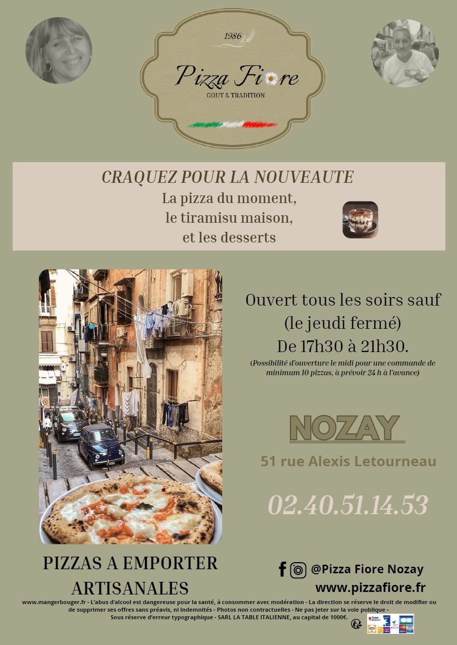 La PIZZA FIORE vous propose des pizzas à emporter que vous soyez fan des grands classiques comme la savoureuse Margherita, l'incontournable 4 Fromages ou que vous ayez envie de tenter une recette audacieuse et gourmande, Fernando se fera un plaisir de vous les préparer.
